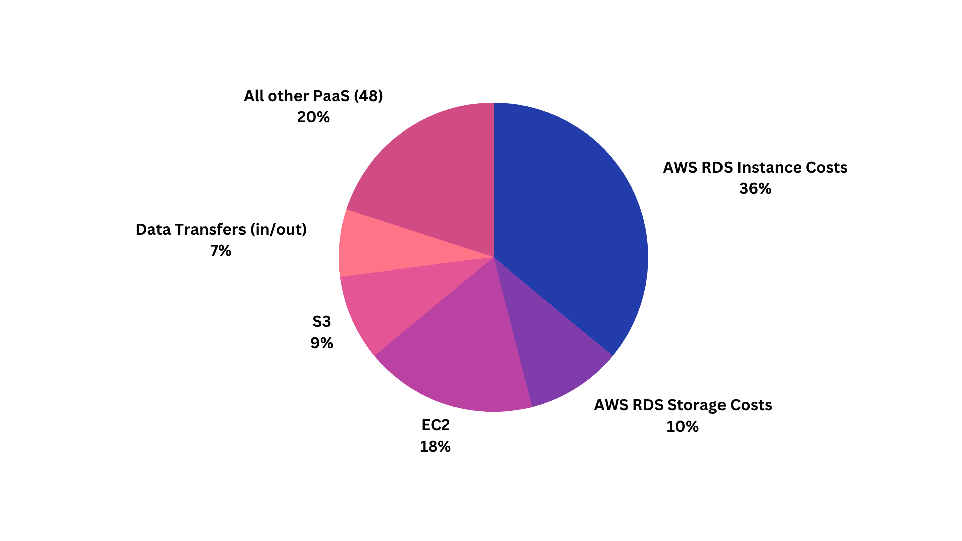 The cost distribution of the new private-cloud database service, which replaced the RDS service looks as follows: