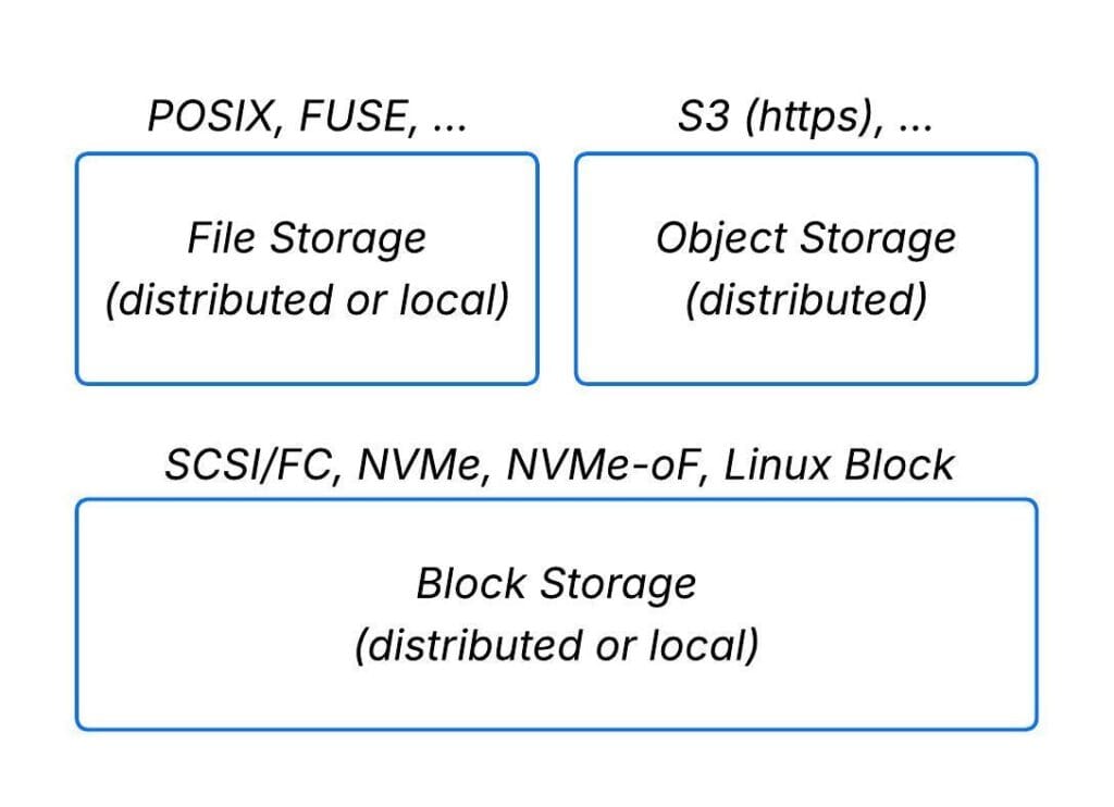 Figure 1: Types of storage (file, object, block)