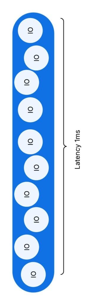 This means that if the system can’t keep enough requests in flight anywhere along the I/O path, throughput becomes limited by latency.