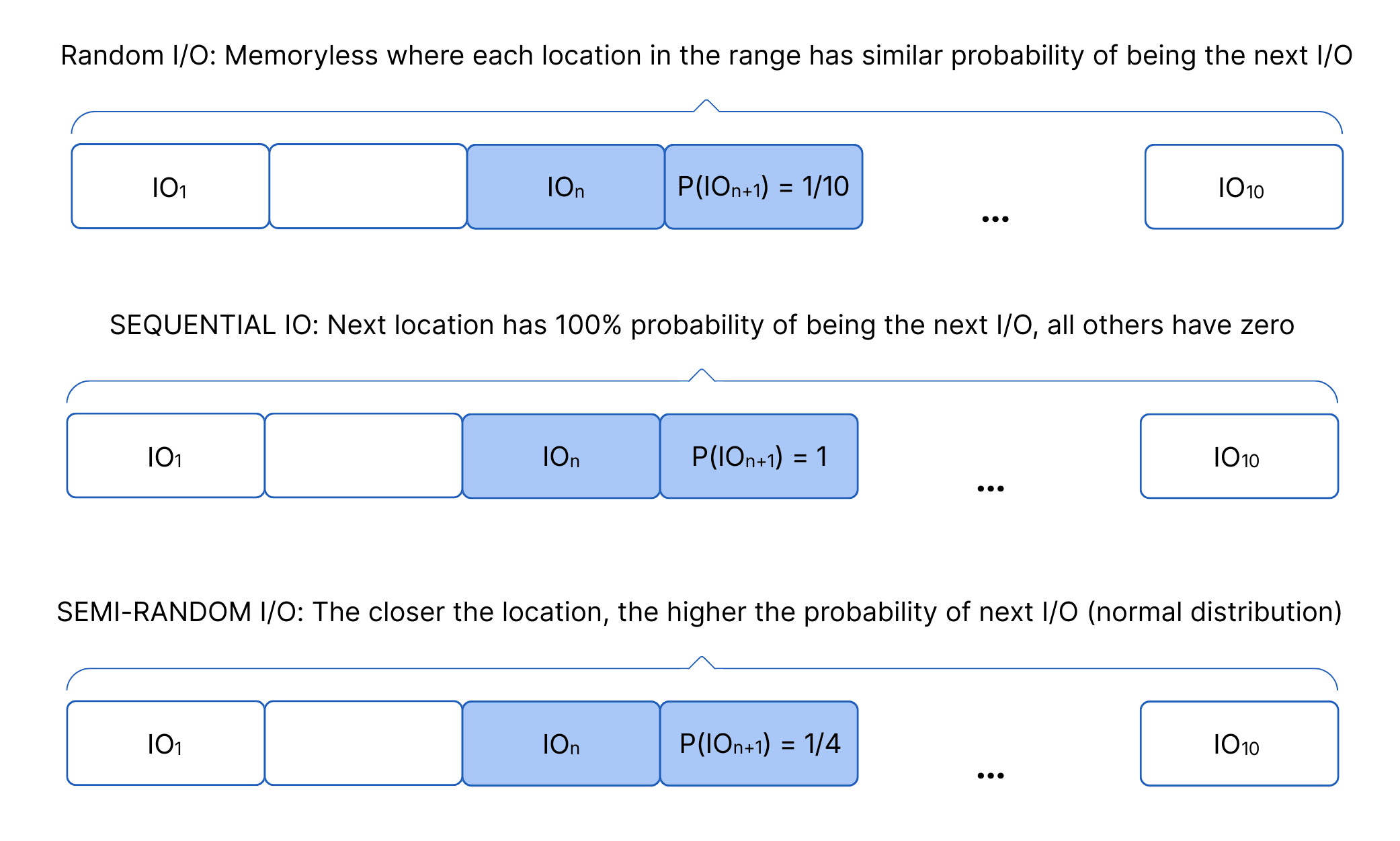 Real-world workloads are much more complicated. Real workloads mix reads and writes, many block sizes, and different degrees of randomness. Giving vast differences in sequential versus random access patterns. Many workloads are located somewhere in the middle of this continuum from sequential to random I/O.