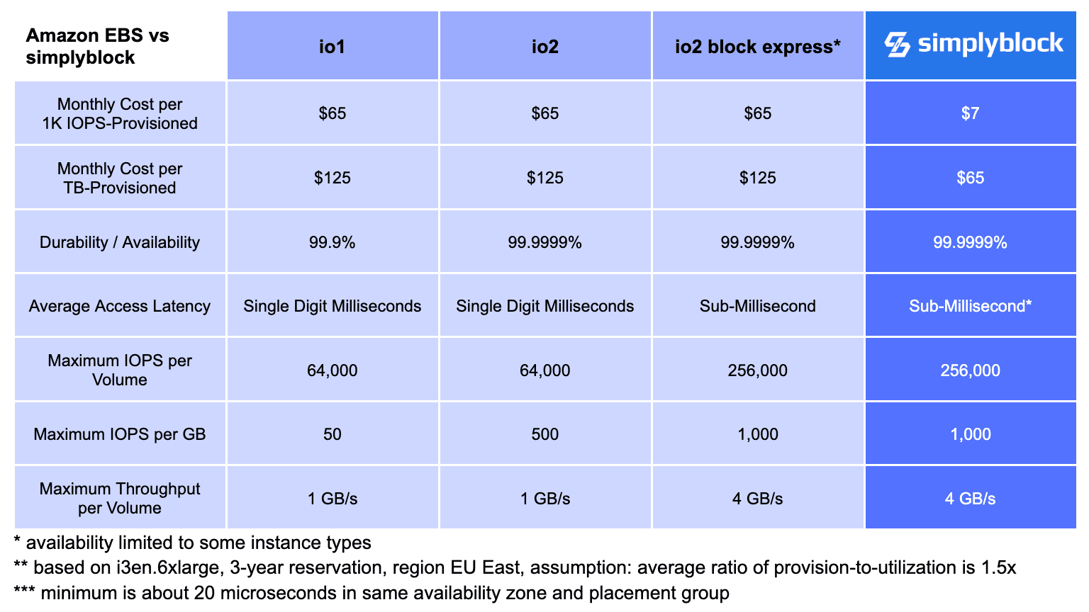 Feature & Price Comparison: Simplyblock vs EBS