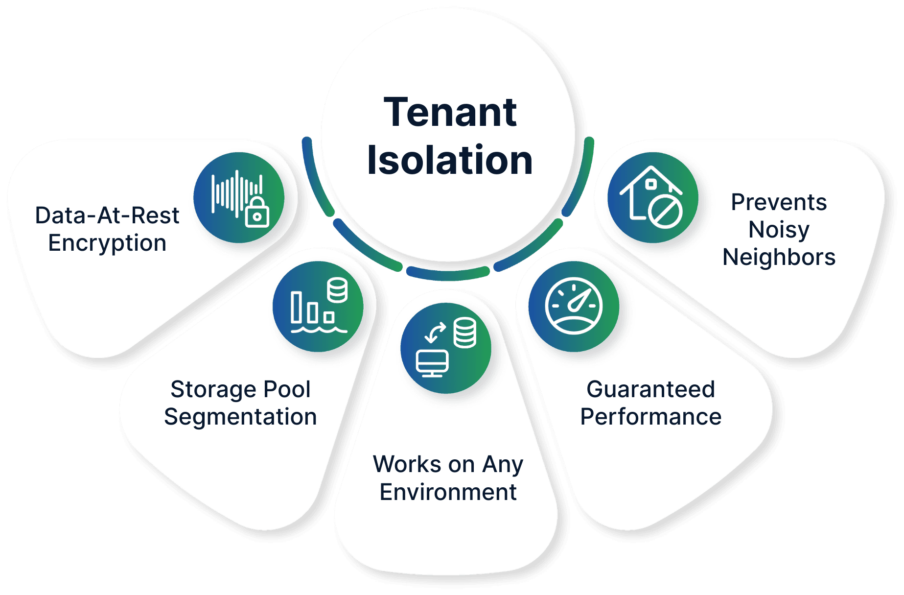 Segment tenants logically with enforced quotas and encrypted volume separation.
